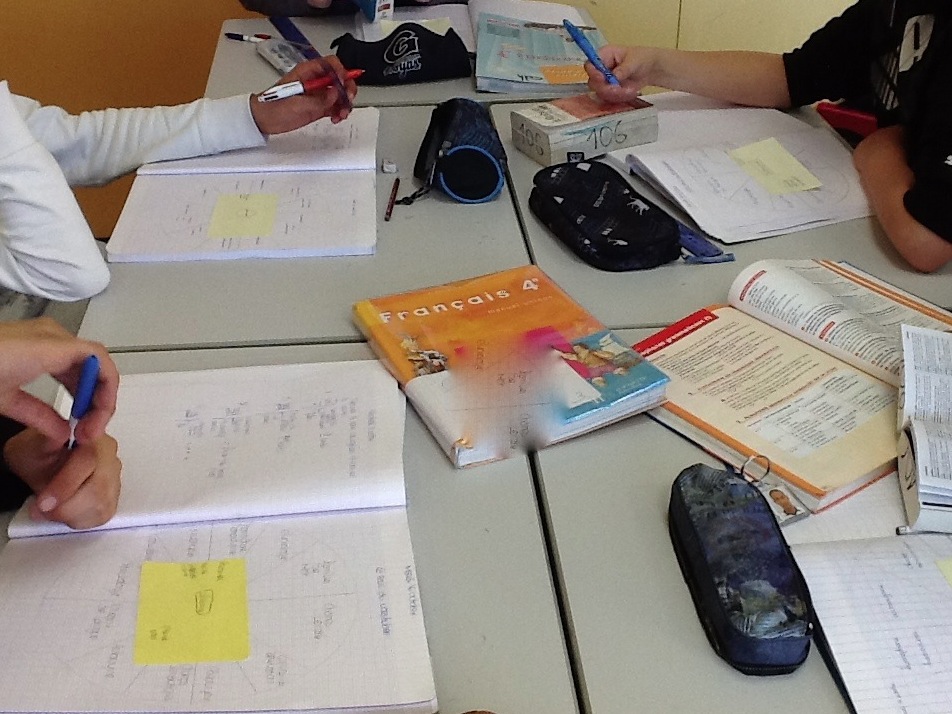 Je ne pose d’ailleurs que très peu de questions. Ce sont les élèves qui recherchent, en proposant des hypothèses, selon leurs besoins, dans les manuels scolaires, les dictionnaires ou leur smartphone, en petits groupes, les différentes notions grammaticales.