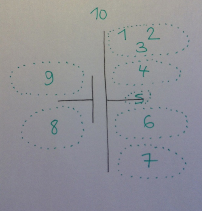 Le but de l’élève est de diviser un verbe en 10 informations qui le composent, sans perdre de vue la globalité des informations. Ainsi celles-ci, sur le symbole, ont une place spécifique.