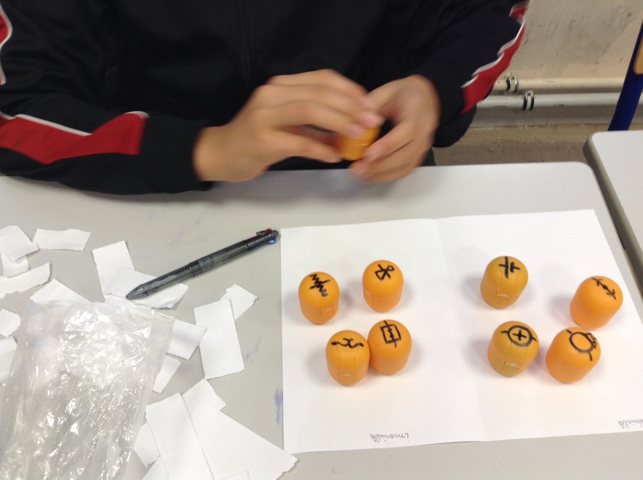 – Découper des petites feuilles pour écrire des exemples et les placer dans les capsules afin qu’un autre élève puisse vérifier les réponses.