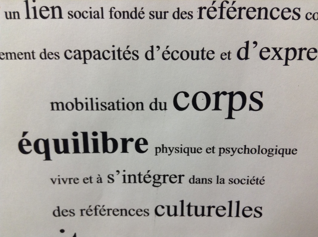Je ne perds pas de vue l’interdisciplinarité : le cours d’EPS se prolonge ici avec seulement la partie Education Physique. De même le cours de géométrie trouve son prolongement avec la création d’espaces inclus, de notions de demi ou de tiers. Même si on ne mesure plus en pouce ou en pied, il me semble important de replacer le corps dans des espaces qu’il doit découvrir, appréhender, maîtriser.
