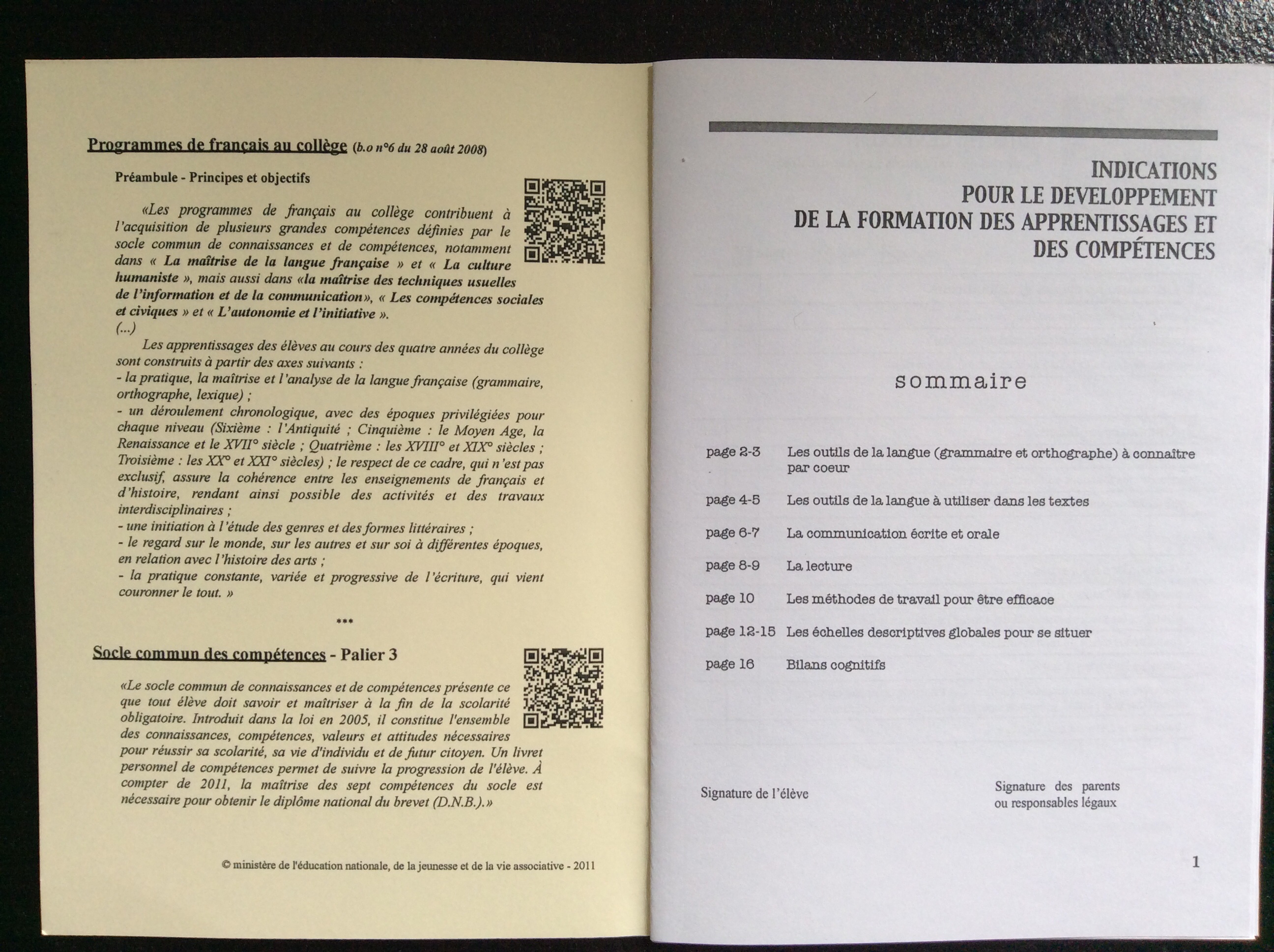 Les programmes de français de chaque niveau ne se suivent pas, je veux signifier qu’ils ne sont pas linéaires et clos sur eux-mêmes. Ils ne sont pas davantage juxtaposés. Le programme de 5ème intègre celui de 6ème. Le programme de 4ème intègre ceux de 6ème et de 5ème. Enfin, le travail en 3ème ne s’arrête pas au seul programme de 3ème mais il inclut les programmes de 6ème, de 5ème et de 4ème. Les années d’apprentissage ne sont jamais cloisonnées. Il s’agit donc chaque année de réactualiser les notions précédentes.