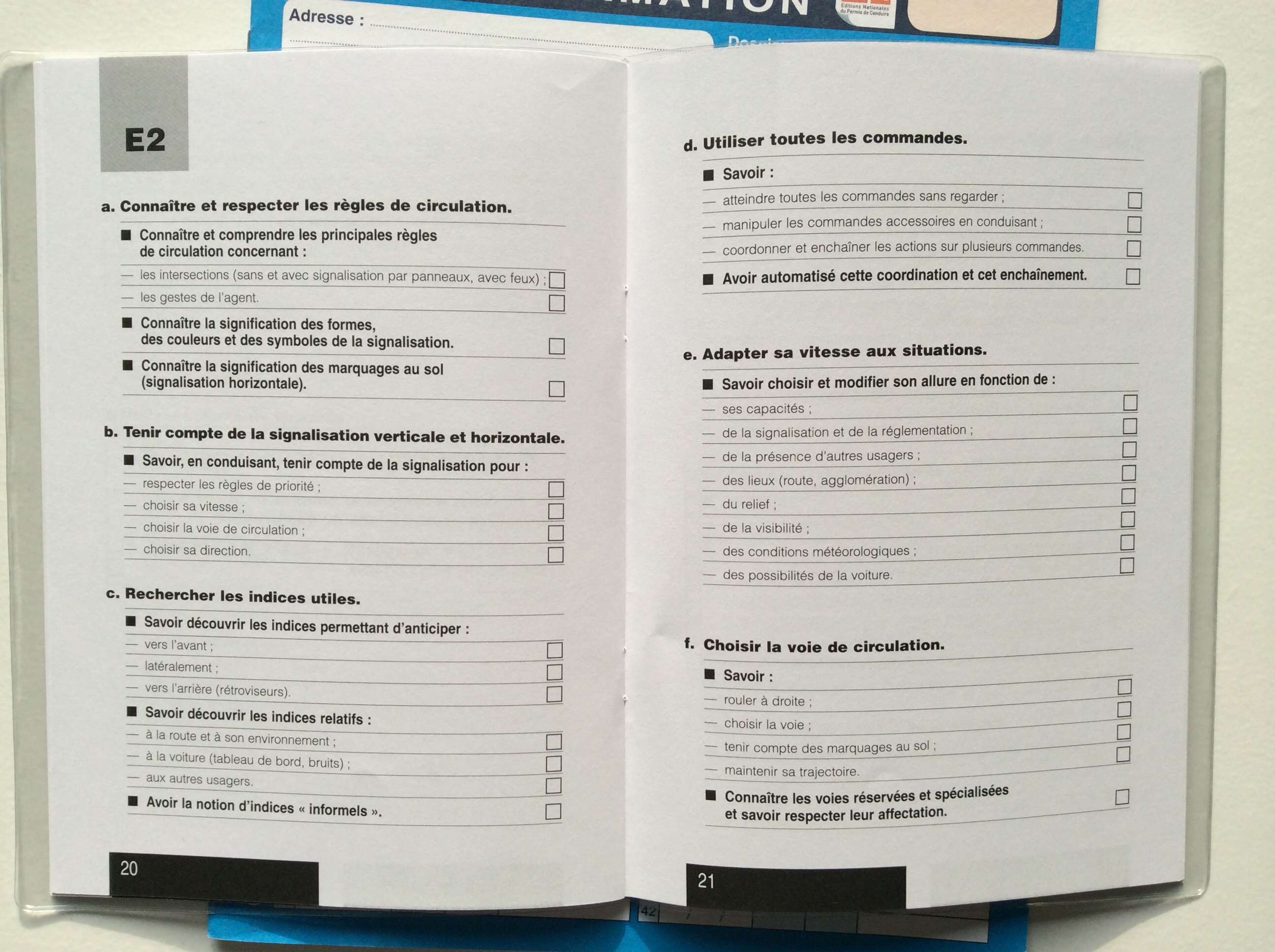 Moi qui m’épuise avec mes points rouges et verts, et qui refait chaque année ma grille de compétences pour qu’elle soit lisible par les parents, je n’avais jamais songé au livret d’apprentissage du permis de conduire, et je te remercie infiniment pour me l’avoir remis sous les yeux.