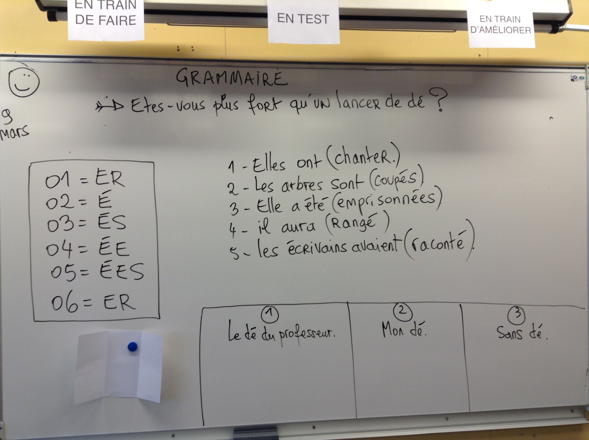 A la lecture de l’article, je pense introduire un rituel quotidien « le être-avoir ». Chaque élève préparera pour le lendemain une phrase de chaque qu’il dictera alors aux autres élèves. Nous corrigerons alors façon dictée négociée, en justifiant chaque choix. Si je n’observe pas de progrès, je testerai le dé! 🙂