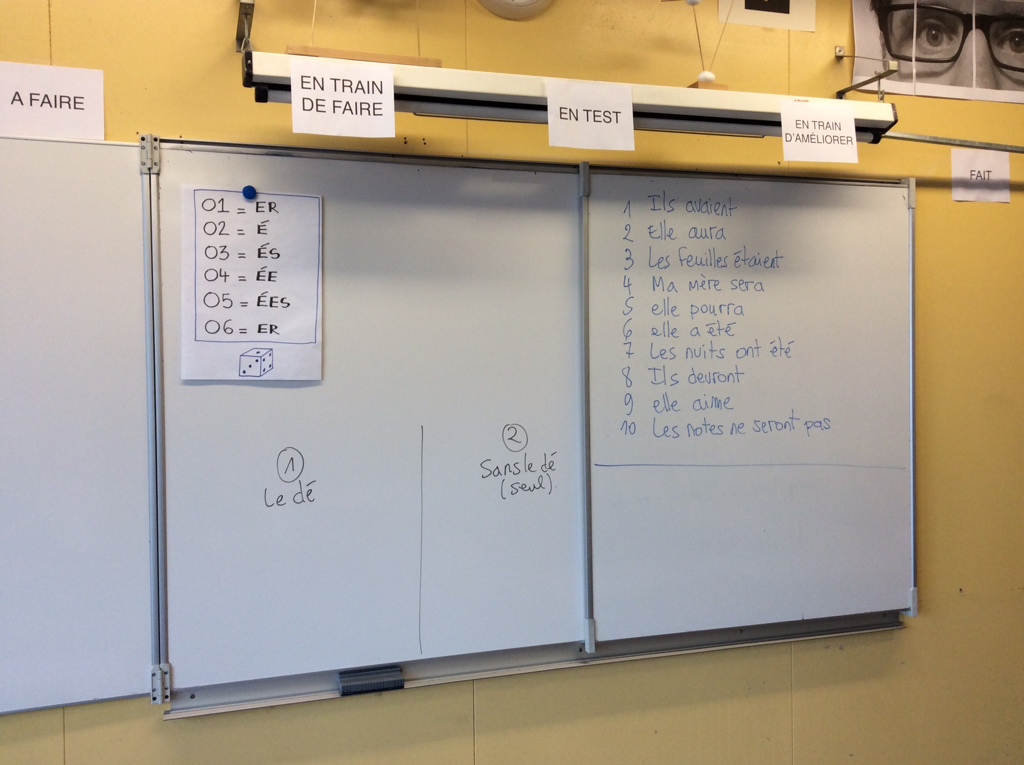1- je lance le dé et j’écris la réponse au tableau. Les élèves recopient les phrases.