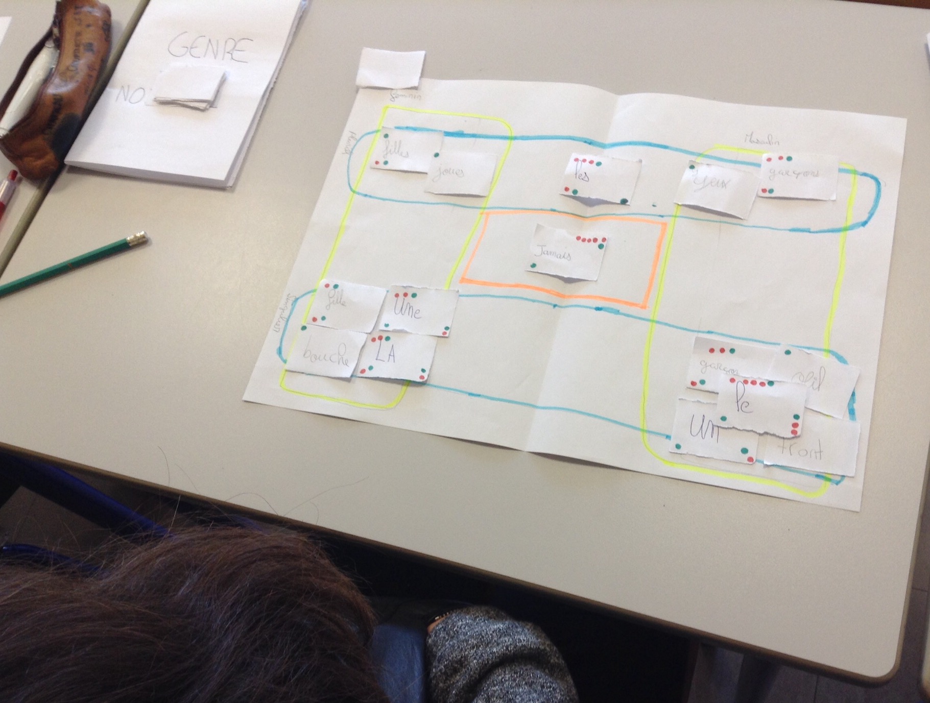 – ils ont un document, le Genbre, qu’ils peuvent consulter et vérifier ce que veut dire masculin, féminin, singulier, pluriel