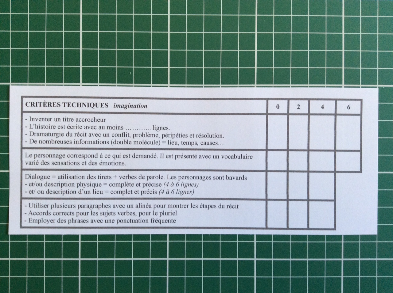 Pour percevoir une progression sur les différents critères, la grille d’évaluation et de notation est toujours la même tout au long de l’année.