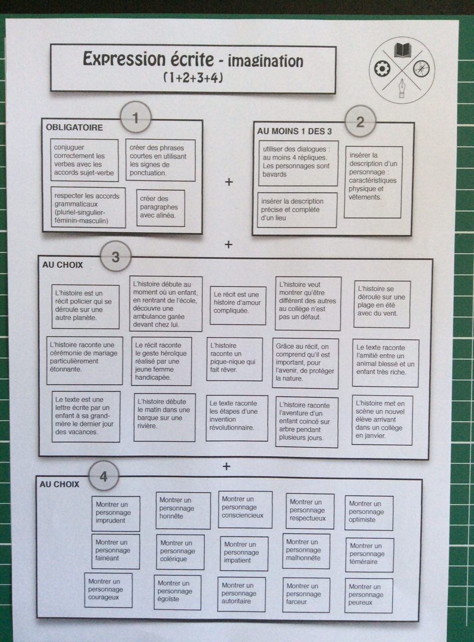 1. Les cases servent à l’amélioration continue de l’expression écrite, de chaque travaux. Le but : que les rédactions de la périodes 5 soient mieux maîtrisées (forme et vocabulaire) que celles de la première période.