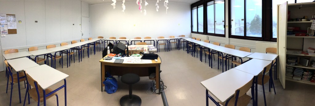 À l’école, au collège, au lycée et à l’université, j’ai été élève dans ce type de configuration. Puis, en tant qu’enseignant, j’ai fait comme mes collègues dans tous les établissements dans lesquels j’ai enseigné : les élèves en ordre serré. Cette disposition dans les salles de cours provient de l’influence de l’armée prussienne au XIXème siècle, après 1871, lorsque la France copia en partie le modèle prussien.