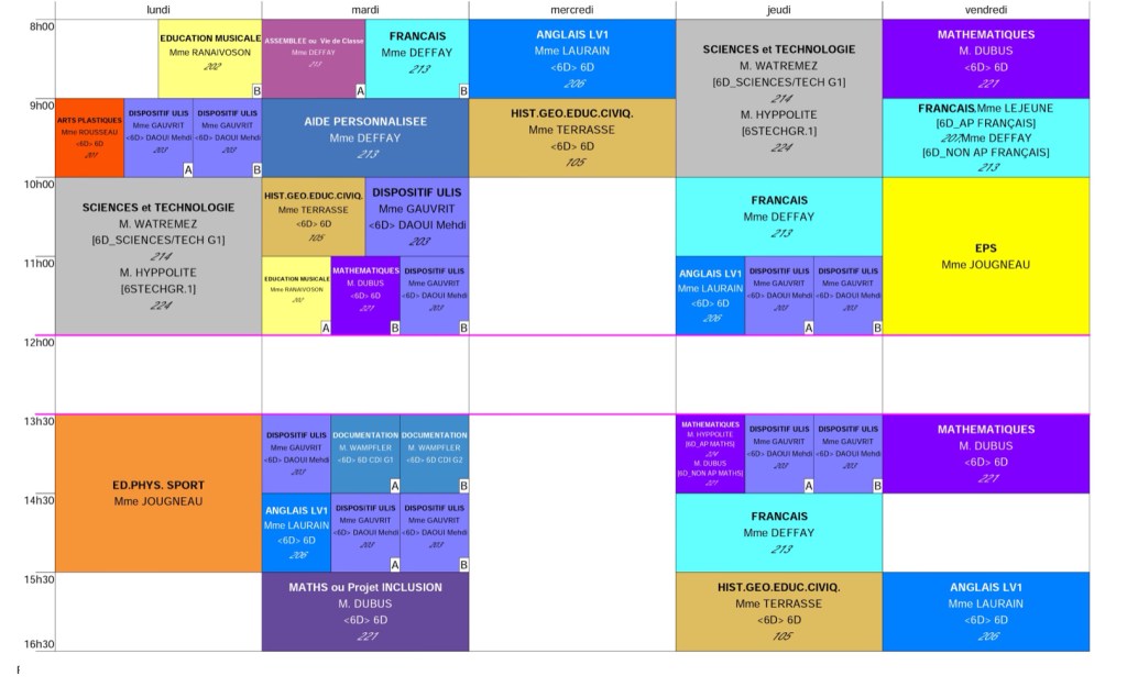 Je souhaiterais que sur chaque emploi du temps soit ajouté une case après les heures officielles de cours. Une case vide sans horaires préalablement inscrits pour que chaque élève – ou chaque famille – puisse inscrire ses heures disponibles en fonction de ses activités personnelles et de son mode de vie.