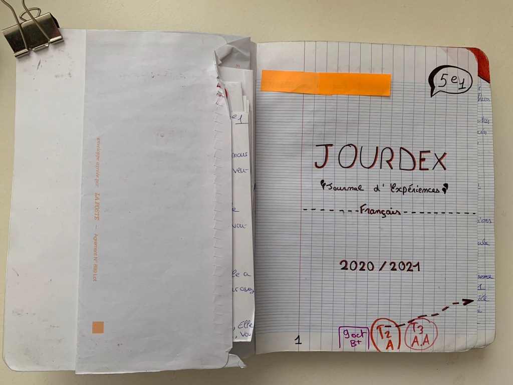 Depuis quelques temps je me dis qu’il faut prendre appui sur le « cahier », cet espace qui a toujours été impersonnel, pour en faire un espace de liberté et de créativité, un espace encadré dans lequel les élèves inscrivent leurs propres pensées et leurs propres processus d’apprentissage. Sous l’influence du Bullet Journal de Ryder Carroll, j’ai ainsi créé le Journal d’Expériences, le JourdEx.