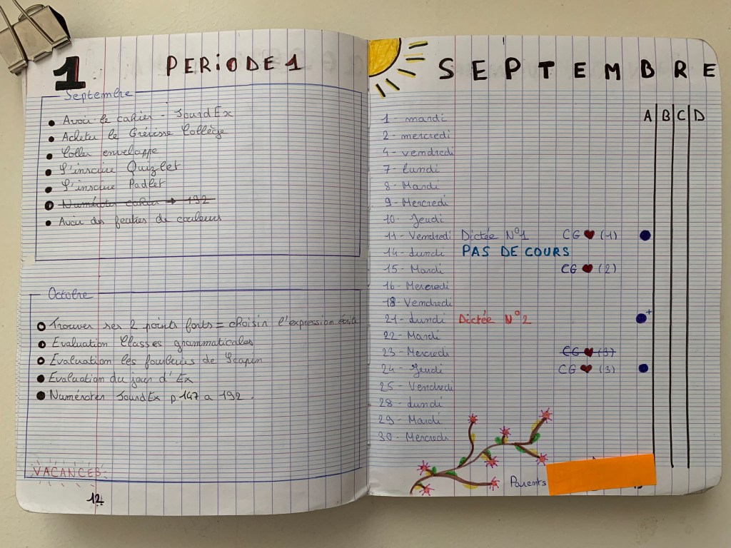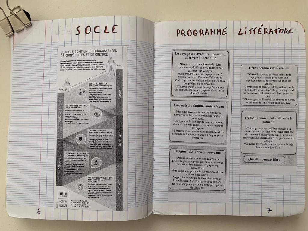 Une élève de 5ème a accepté (ainsi que ses parents) que je reproduise les pages de son JourdEx. Je vous le présente rapidement.