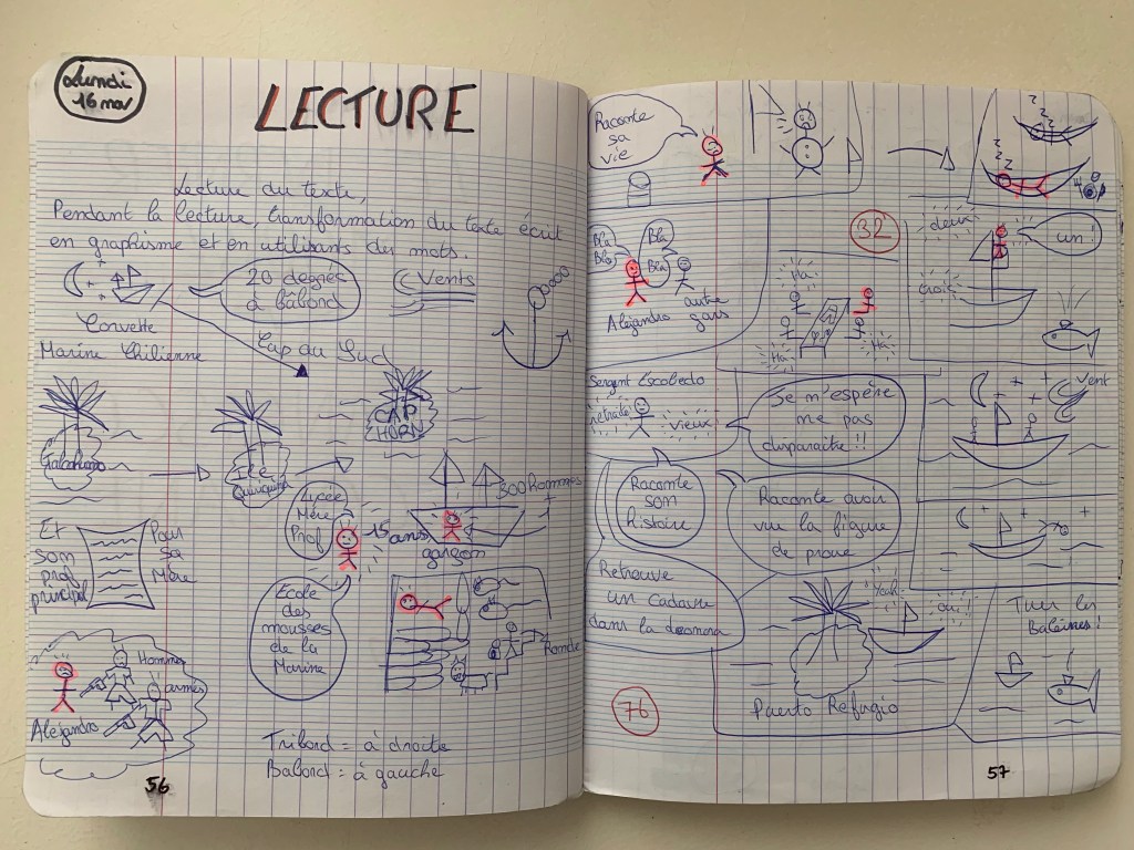 Au fur et à mesure de l’année, pendant quelques minutes à la fin de certains cours ou après certains événements, les élèves écrivent leur journal personnel. L’écriture comme un garde-mémoire.