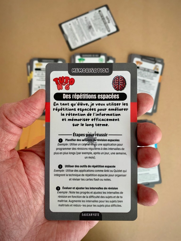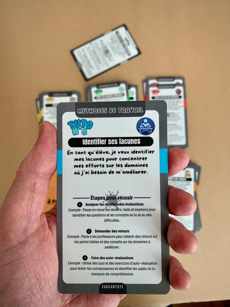 Ces jeux de cartes, bien qu’ils soient conçus pour une utilisation individuelle par les élèves, vont bien au-delà. Ils sont également un précieux support pour les parents d’élèves et peuvent servir d’outil pédagogique aux enseignants.