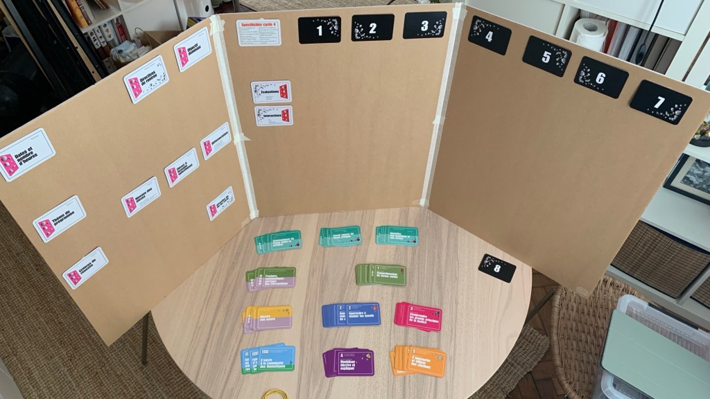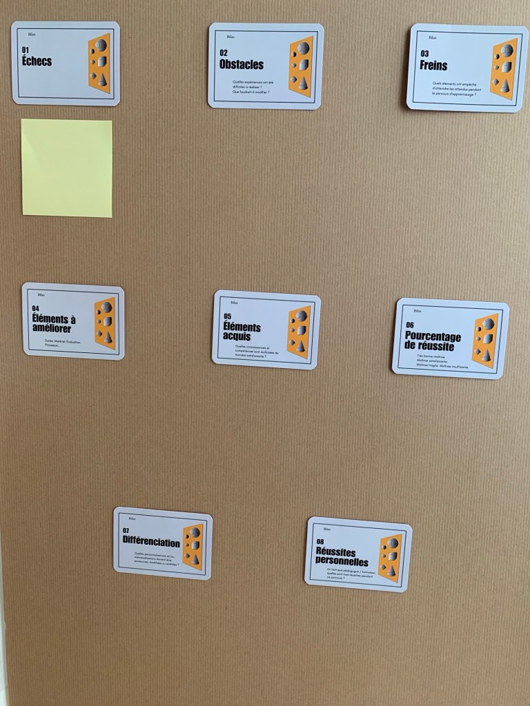 Je peux réorganiser, modifier ou déplacer les cartes et les post-it en fonction des observations et des retours que je reçois. Cela me permet de garder une approche pédagogique fluide, et ludique pour moi, où les ajustements se font rapidement pour optimiser l’apprentissage des élèves tout en respectant les cadres des textes de l’Éducation nationale.