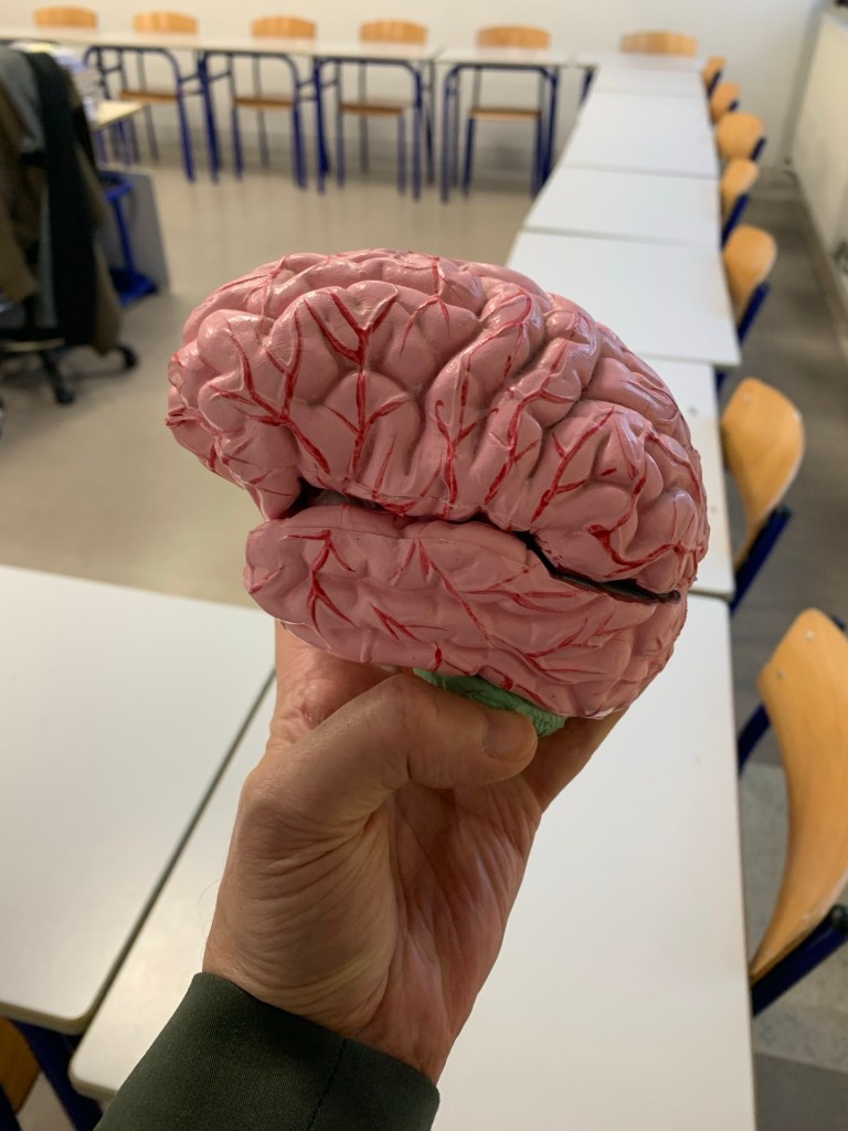 L’un des points forts de mon approche est l’utilisation d’un cerveau en modèle 3D que je présente à mes élèves. Ce cerveau devient un support tangible pour leur expliquer comment leurs sensations sont captées, comment les émotions naissent dans des zones précises du cerveau, comme l’amygdale, et comment elles interagissent avec des processus plus complexes, comme les sentiments, souvent liés au cortex préfrontal.