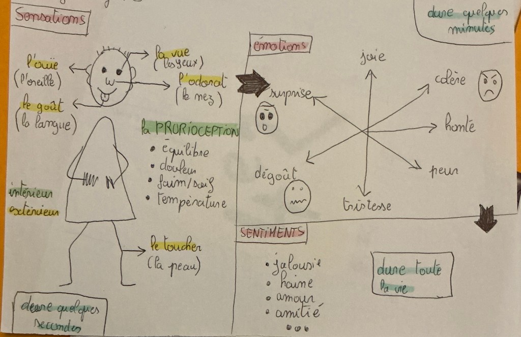 Cette démarche prend tout son sens lorsque j’intègre les concepts de sensations, d’émotions et de sentiments dans mes cours, en utilisant des outils pédagogiques variés et concrets.