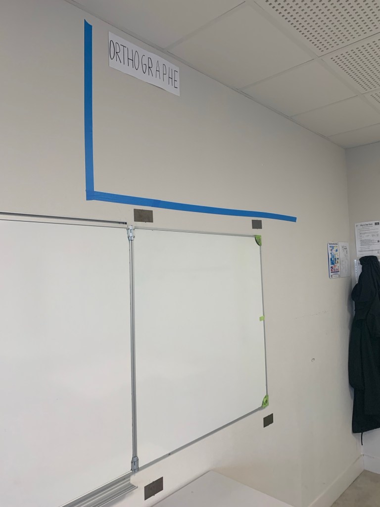 En ce début d’année, ma salle de classe ressemble à une « obeya » encore vide : les murs sont prêts : conjugaison, grammaire, orthographe, écriture, lecture. Mais rien n’y est encore affiché. Ces espaces accueilleront bientôt les tutoriels plus ou mouns éphémères qui aideront mes élèves à progresser pas à pas.