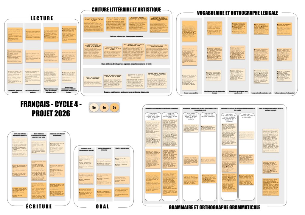En attendant les nouveaux programmes de français pour 2026, voici une réalisation format A1 pour embrasser d’un seul regard le projet de programme de français cycle 4.