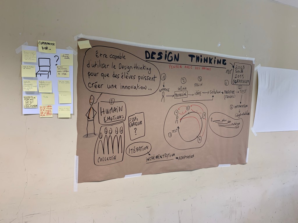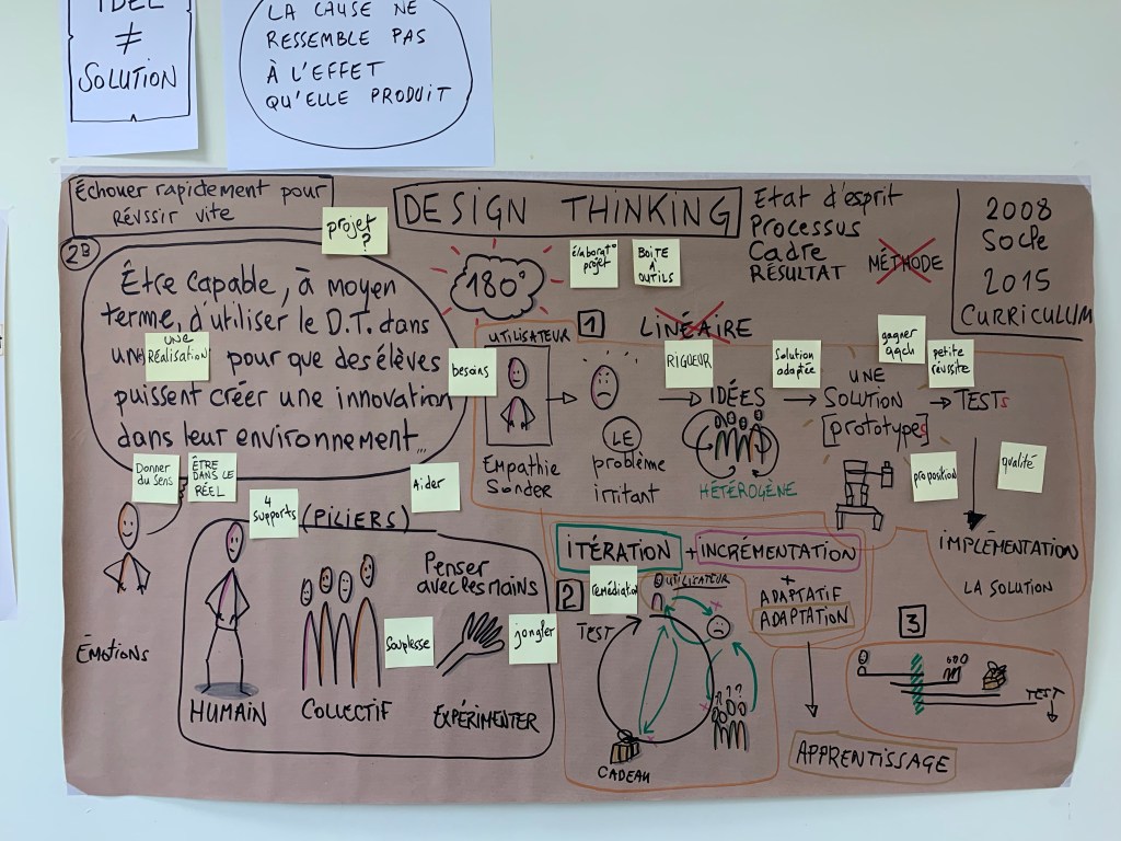 Rappel (itération) de ce qu’est le Design Thinking, présentation des ateliers et des outils présentés depuis mercredi.