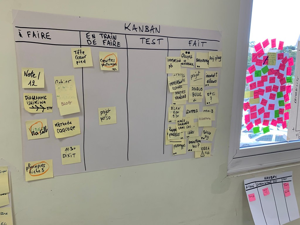 Présentation du Kanban, et d’organisations possibles en salle de cours, présentation de Educaryote (jourdEx, tables en cercle, groupes, Harkness, trackers pour l’apprentissage autonome des élèves). Liens avec l’état d’esprit du Design Thinking et du socle commun.