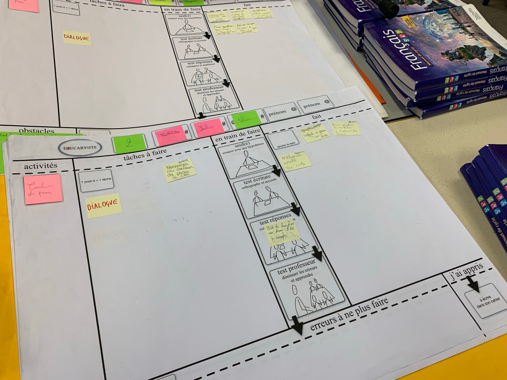 Dans un premier temps, les élèves ont produit des prototypes dans leur JourdEx, leur Journal d’Expérience. Ils ont été amenés à utiliser une partie du processus de Design Thinking : créer des prototypes et les tester.