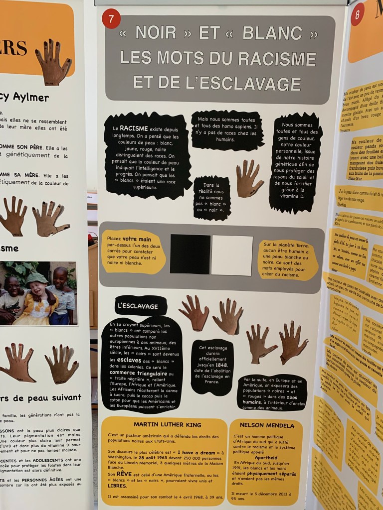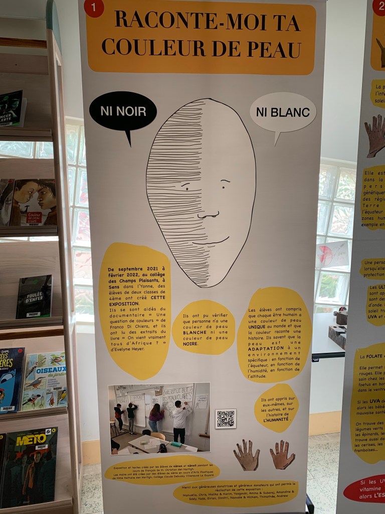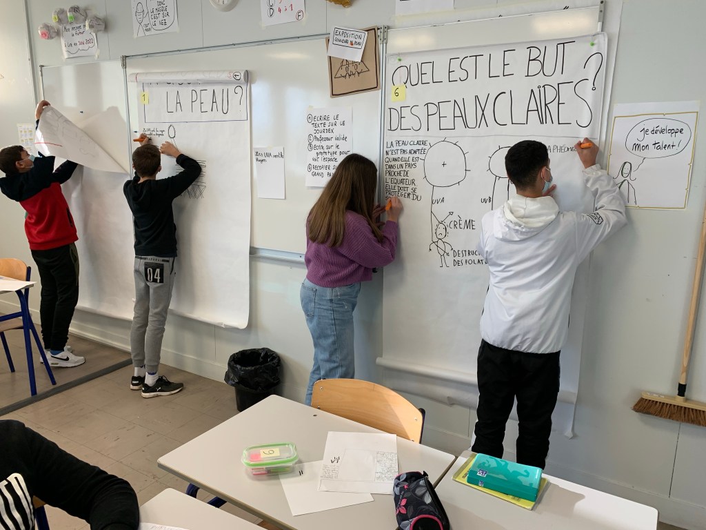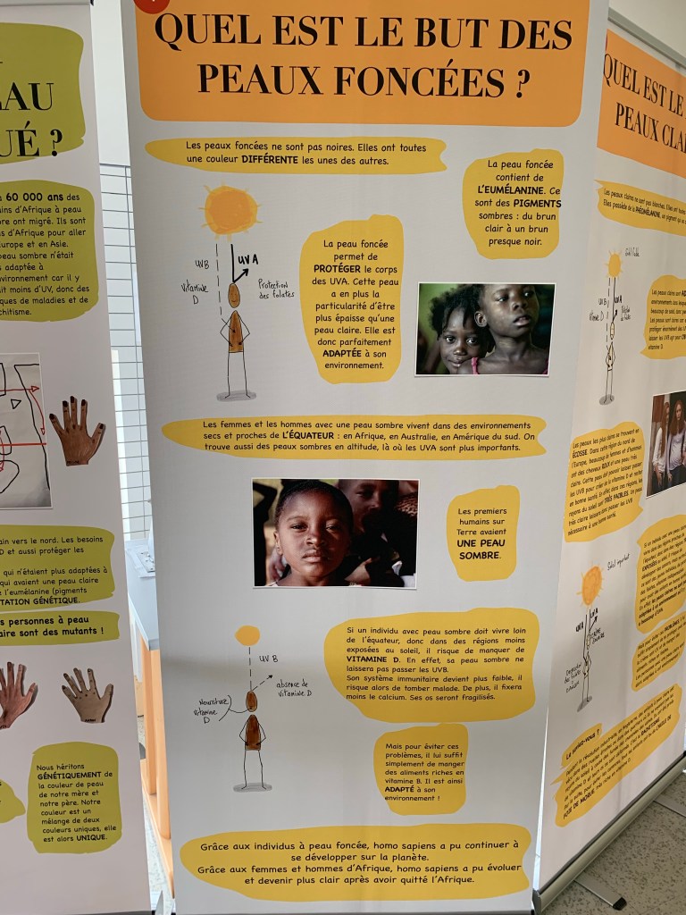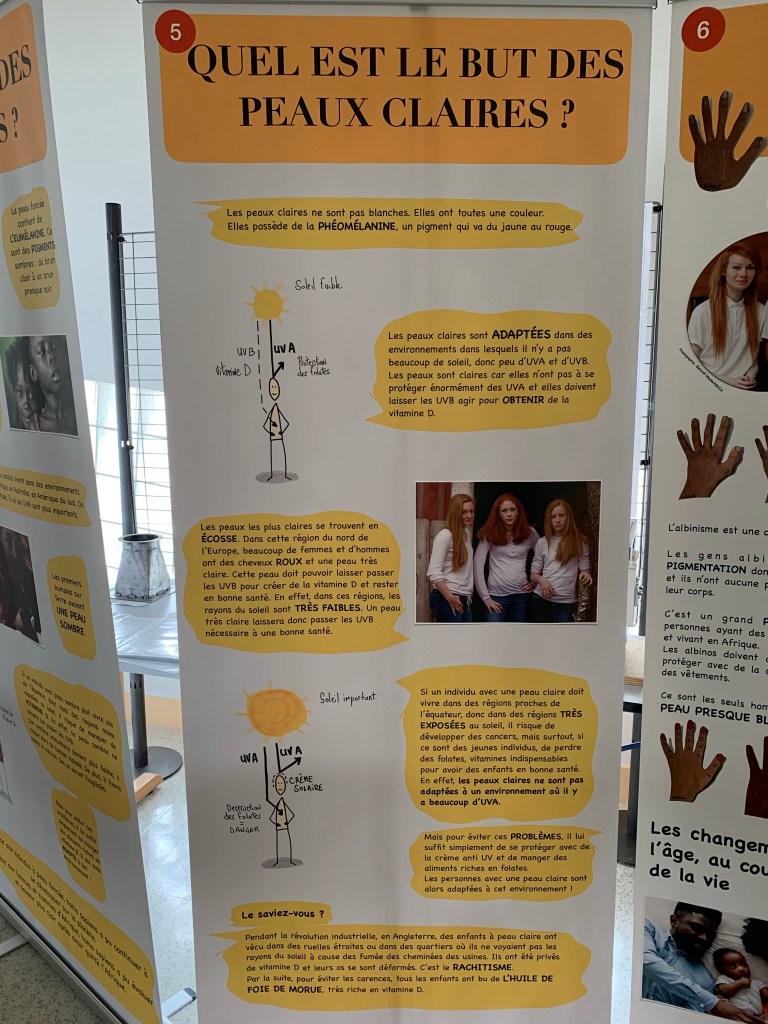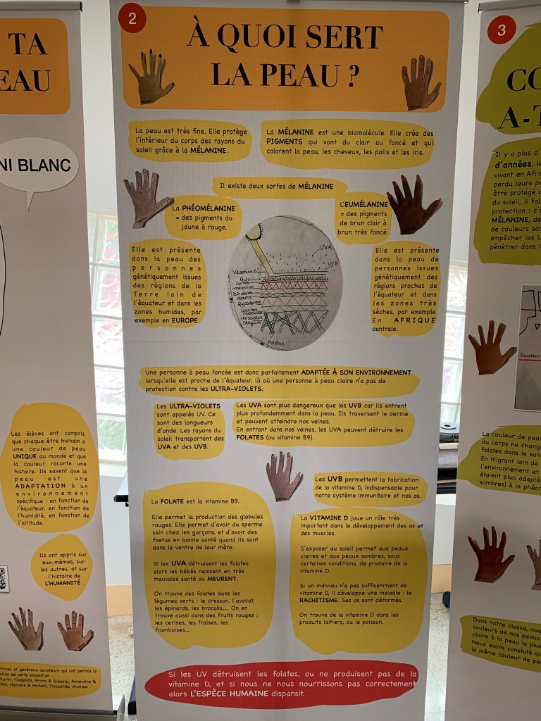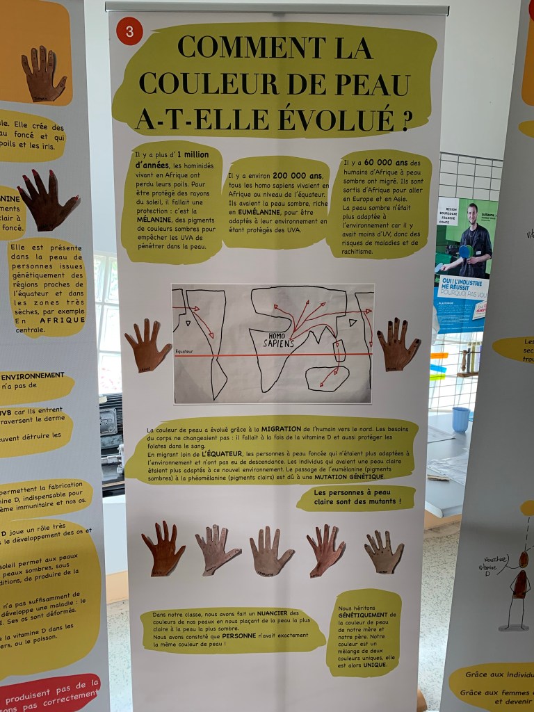 Des élèves de 2 classes de 4ème d’un collège REP ont créé une exposition pour expliquer l’origine et le rôle de nos couleurs de peau
